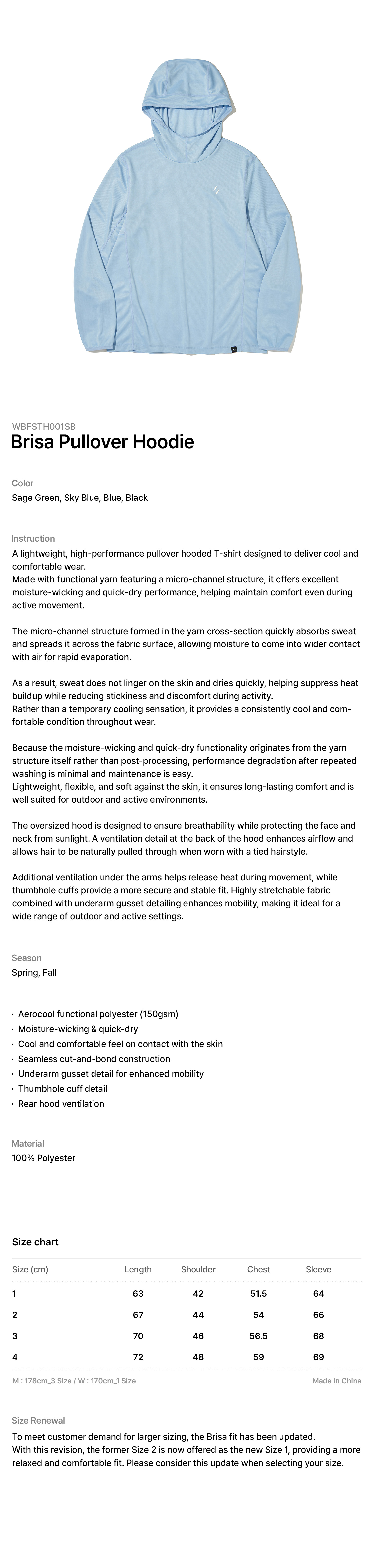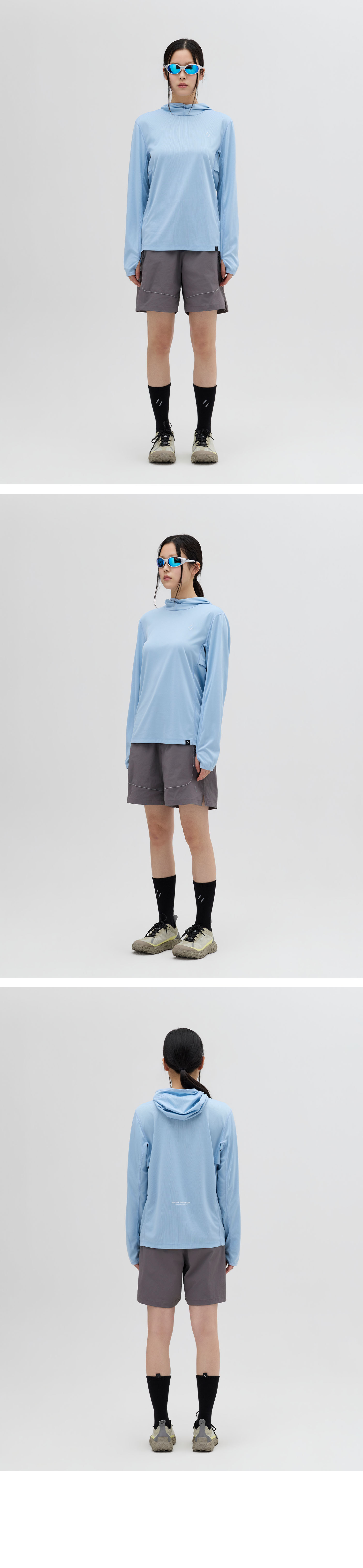 The oversized hood is designed to ensure breathability while protecting the face and neck from sunlight.