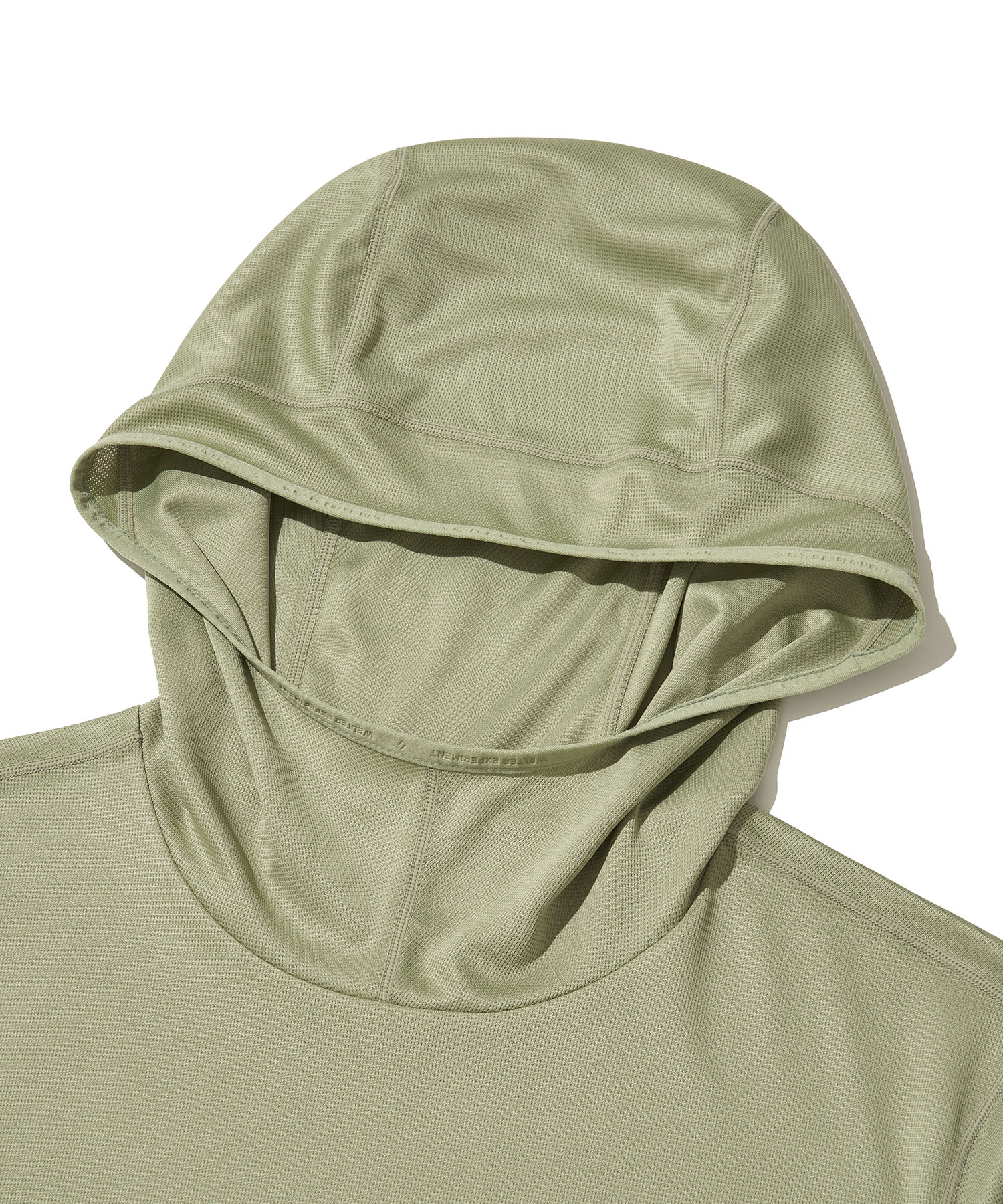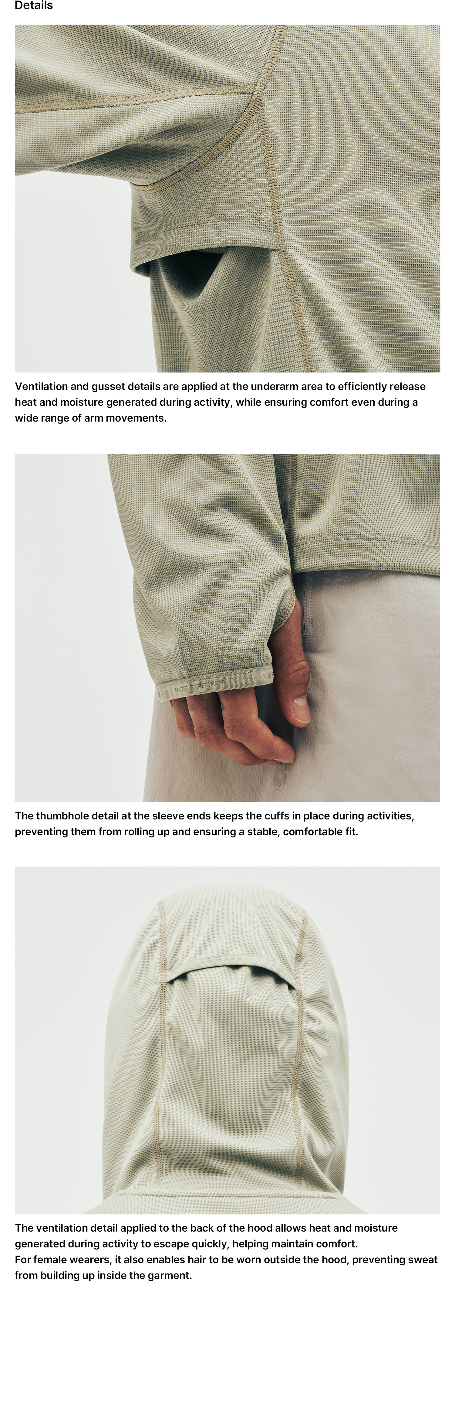The oversized hood is designed to ensure breathability while protecting the face and neck from sunlight.