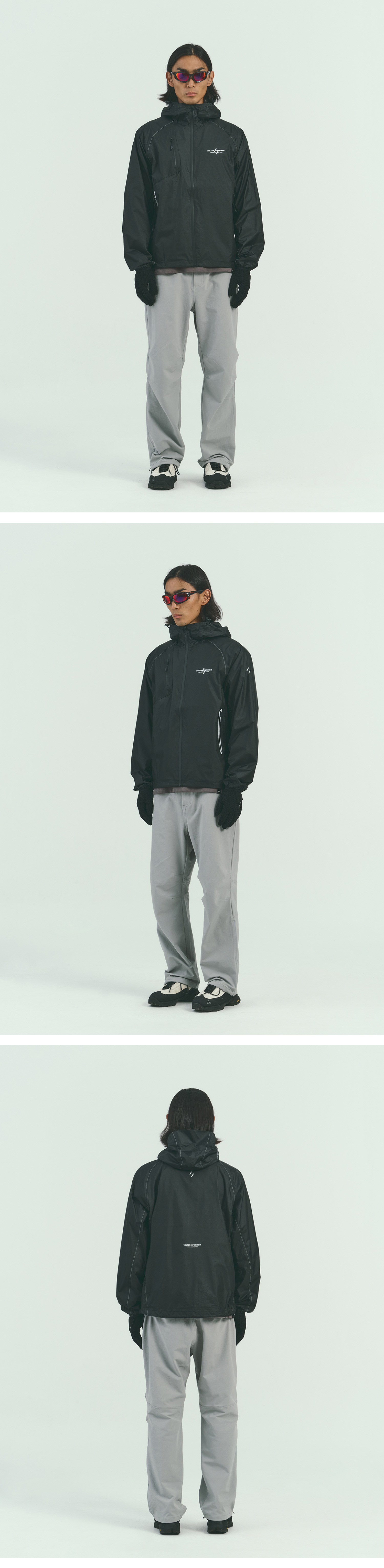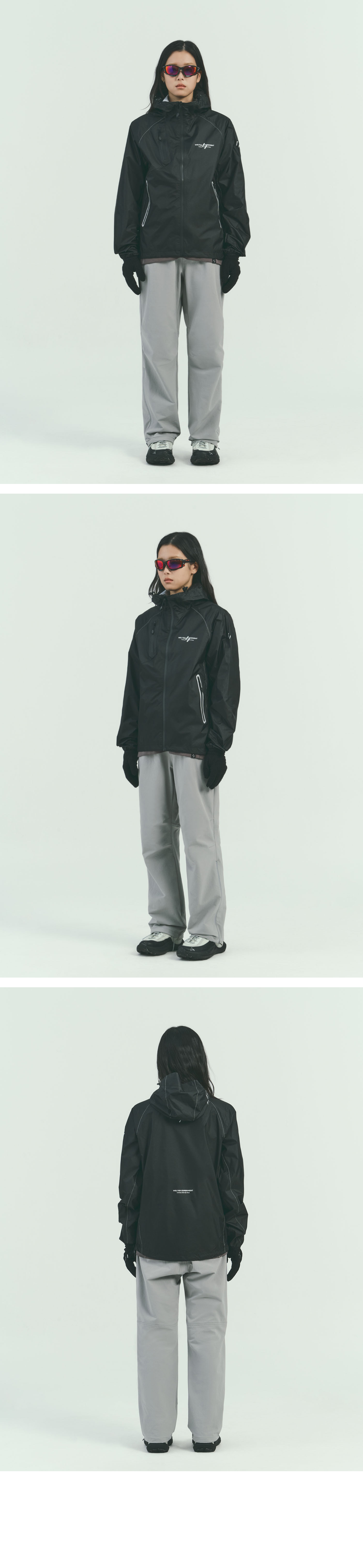Waterproof zipper closure, adjustable drawstrings at the hood and hem enhance functionality, while reflective prints, welding, stitching, and zipper pullers add safety and a refined finish.