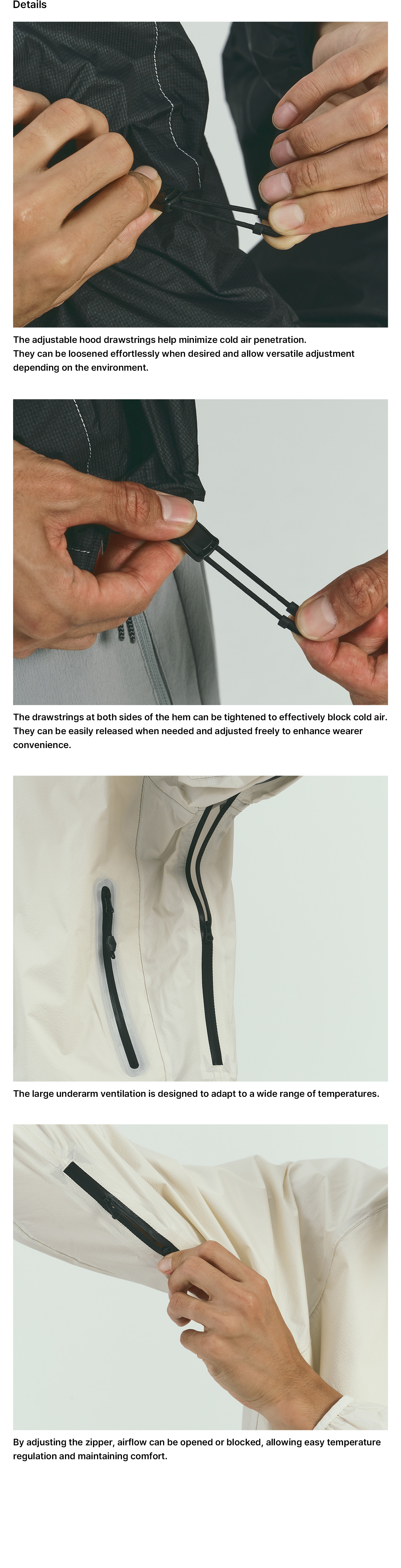 Reflective details enhance visibility for safe activity at night, while underarm two•way waterproof zipper ventilation allows for easy temperature control even with the jacket on.