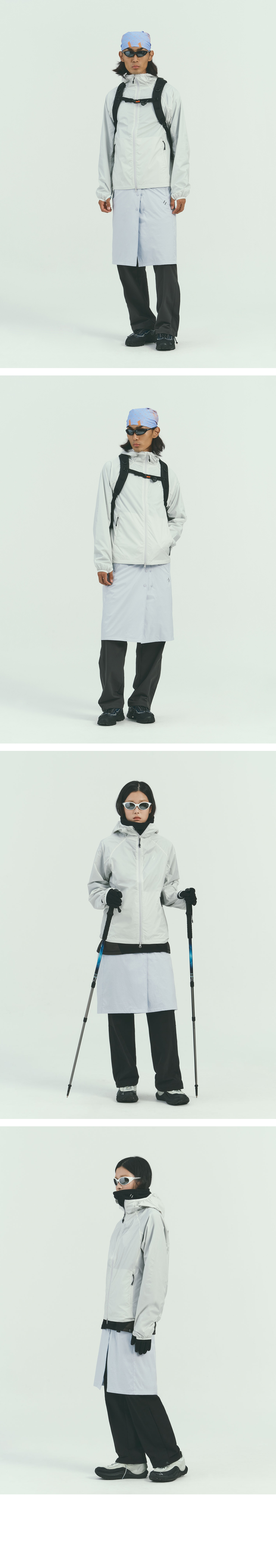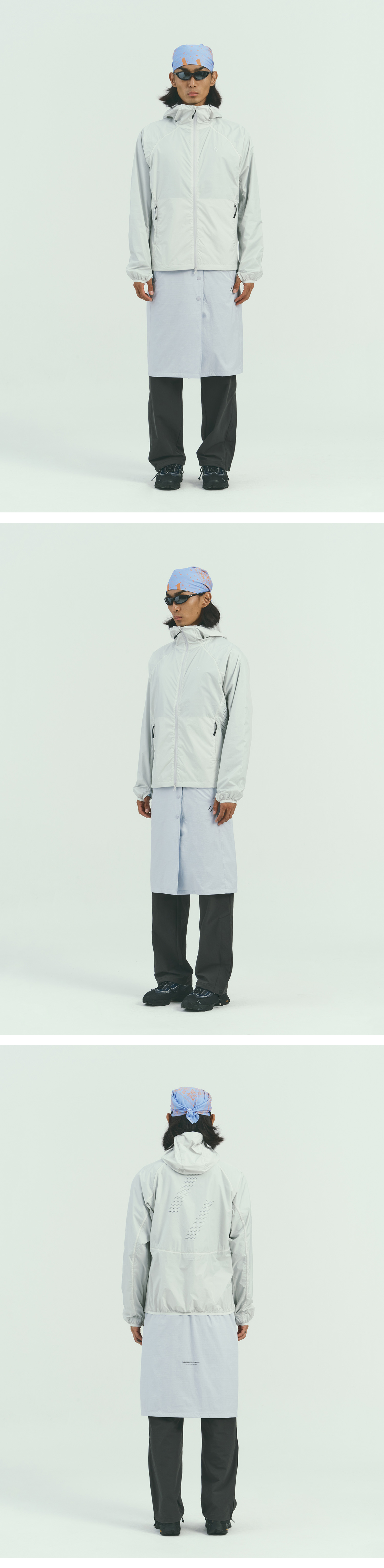 Two-way front zipper closure and hem drawstring enhance functionality, while reflective prints, pullers, stitches, and logo band details complete a sleek and modern look.