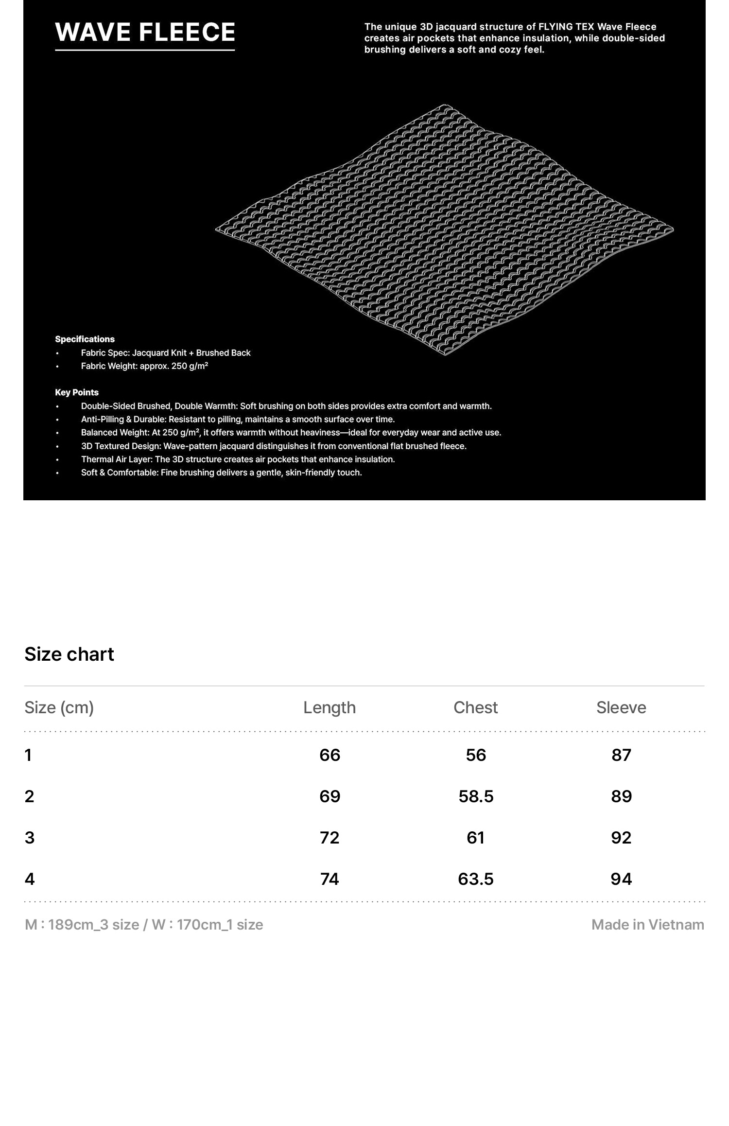 The unique 3D jacquard structure of FLYING TEX Wave Fleece creates air pockets that enhance insulation, while double-sided brushing delivers a soft and cozy feel.