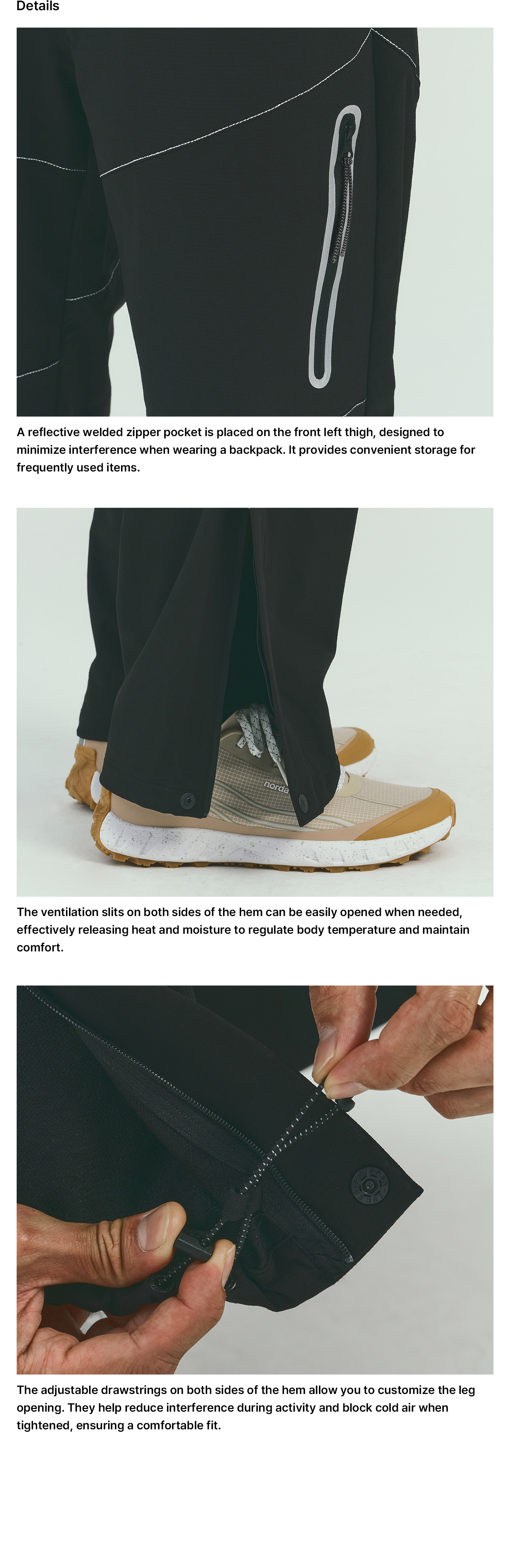 Durability and finishing quality are elevated with YKK zippers and Woojin Plastic components, while functional details such as hem zipper ventilation, 3M reflective drawstring, and welded pocket deliver both performance and style.