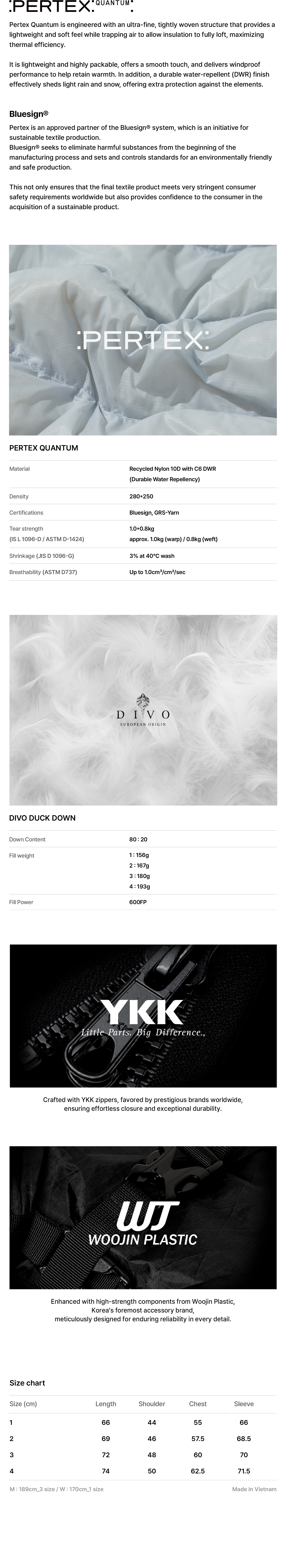 Made with PERTEX® QUANTUM recycled nylon and filled with DIVO duck down, it delivers warmth without the weight, while maintaining excellent durability.