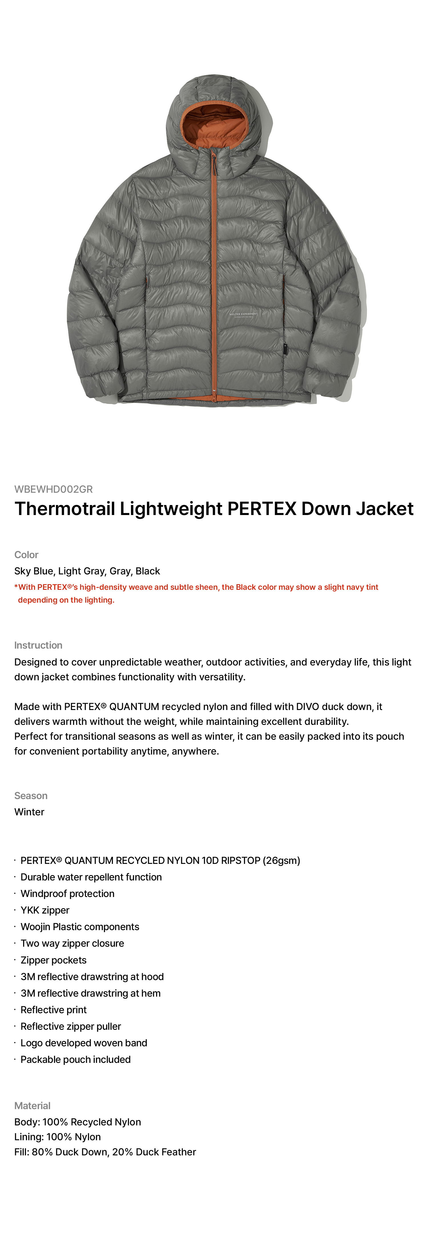 Material: Recycled Nylon 10D with C6 DWR (Durable Water Repellency)