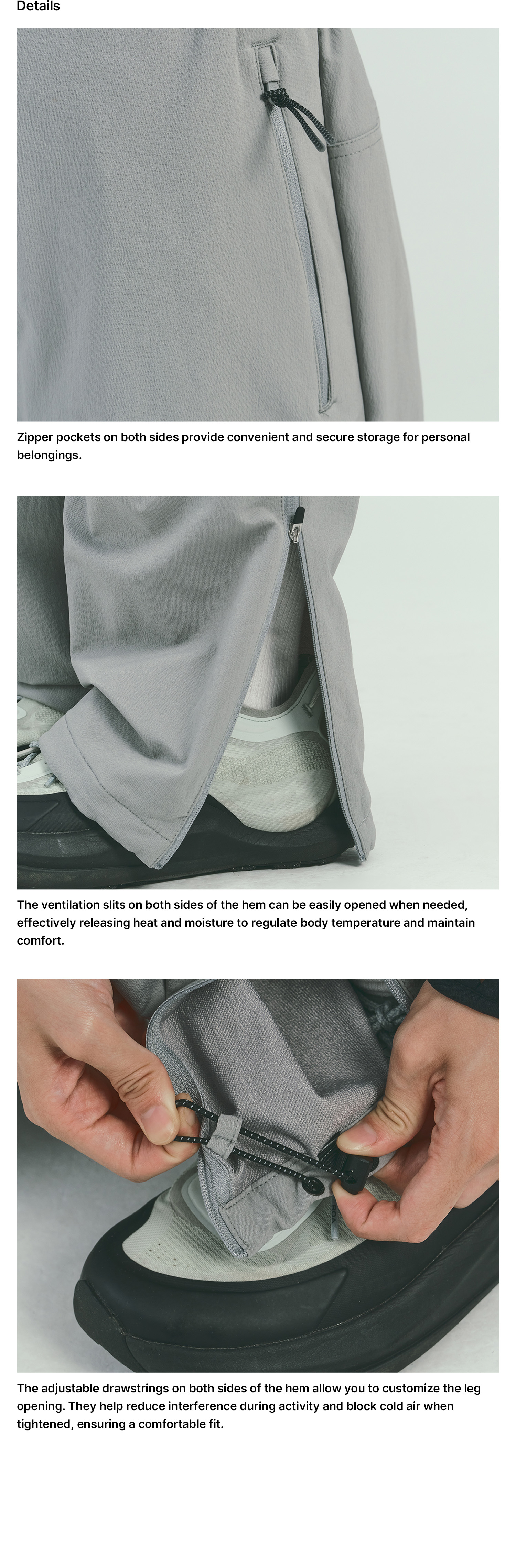 Finished with YKK zippers and Woojin Plastic components for enhanced reliability, they also feature hem zipper ventilation, 3M reflective drawstrings, and reflective print details that combine both functionality and style.