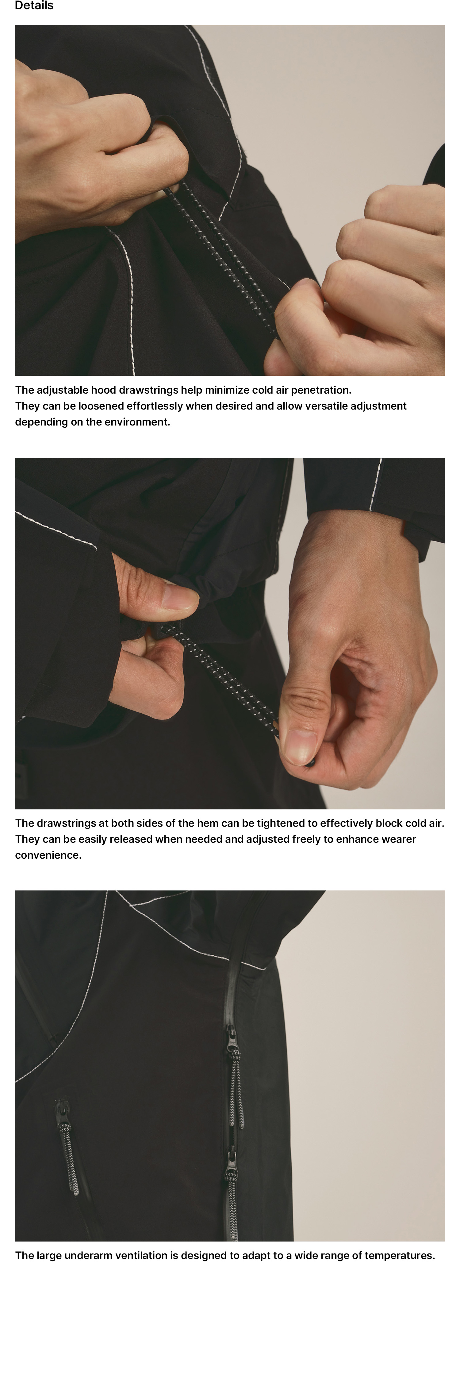 Utilizing high-strength components from Woojin Plastic, Korea’s leading hardware brand, the jacket is designed with long-lasting reliability down to the smallest details.